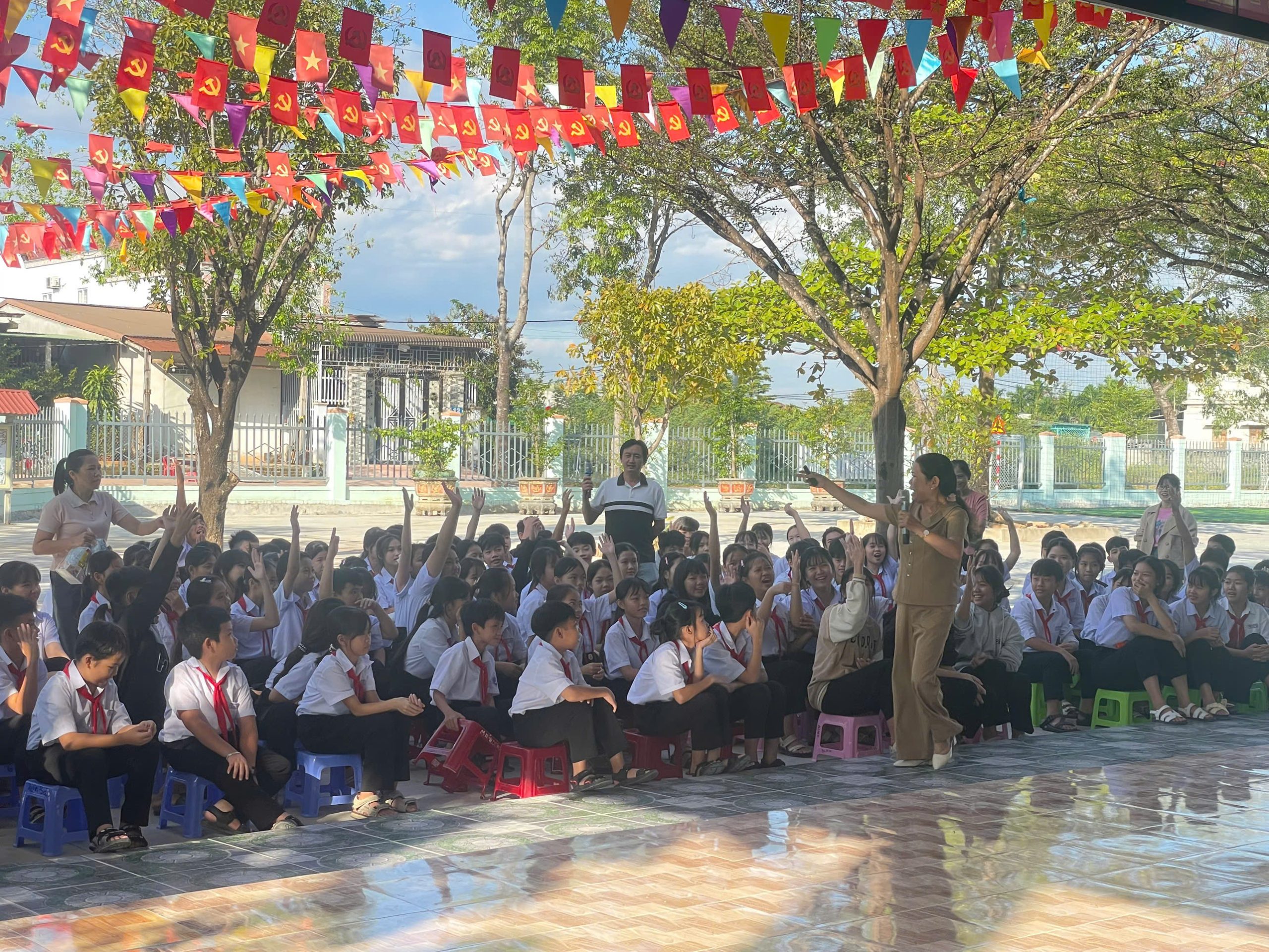 Buổi tuyên truyền có sự tham gia Ban giám hiệu nhà trường, thầy cô giáo chủ nhiệm cùng 140 học sinh khối 6, 7, 8, 9.
